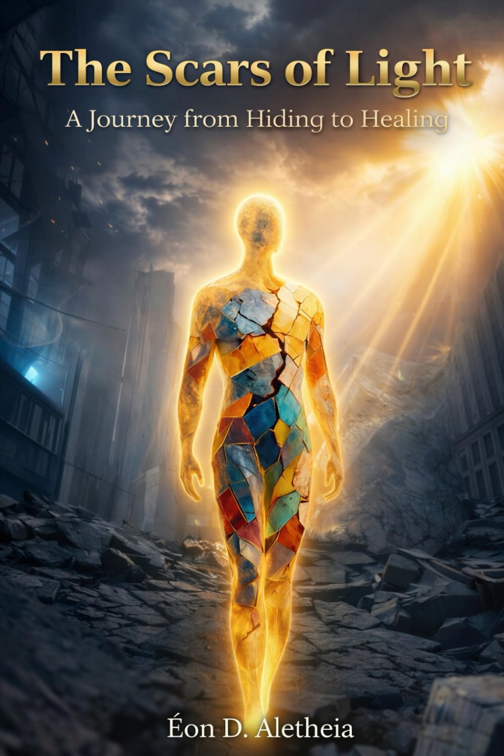 Years of pressure build. A pale line on his forehead—the first scar of light. Panic attacks. He walks away from everything.